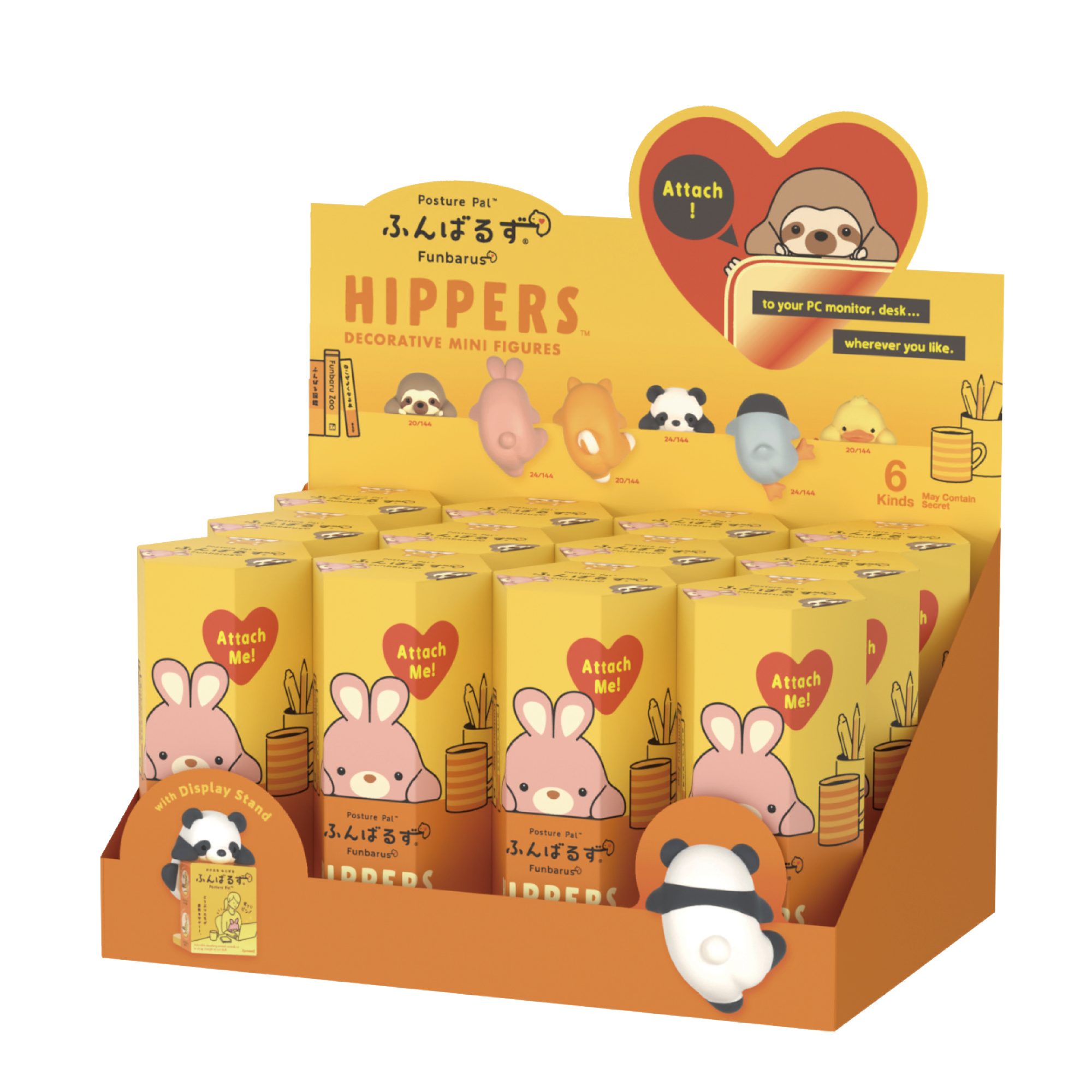 The plush companions POSTURE PAL. known for supporting your slouching posture. are now debuting as decorative minifigures—HIPPERS Funbarus! These adorable minifigures are perfect for decorating your favorite items like smartphones. laptops. storage boxes—or attach them to the included base and sit them on your desk with you while you work!