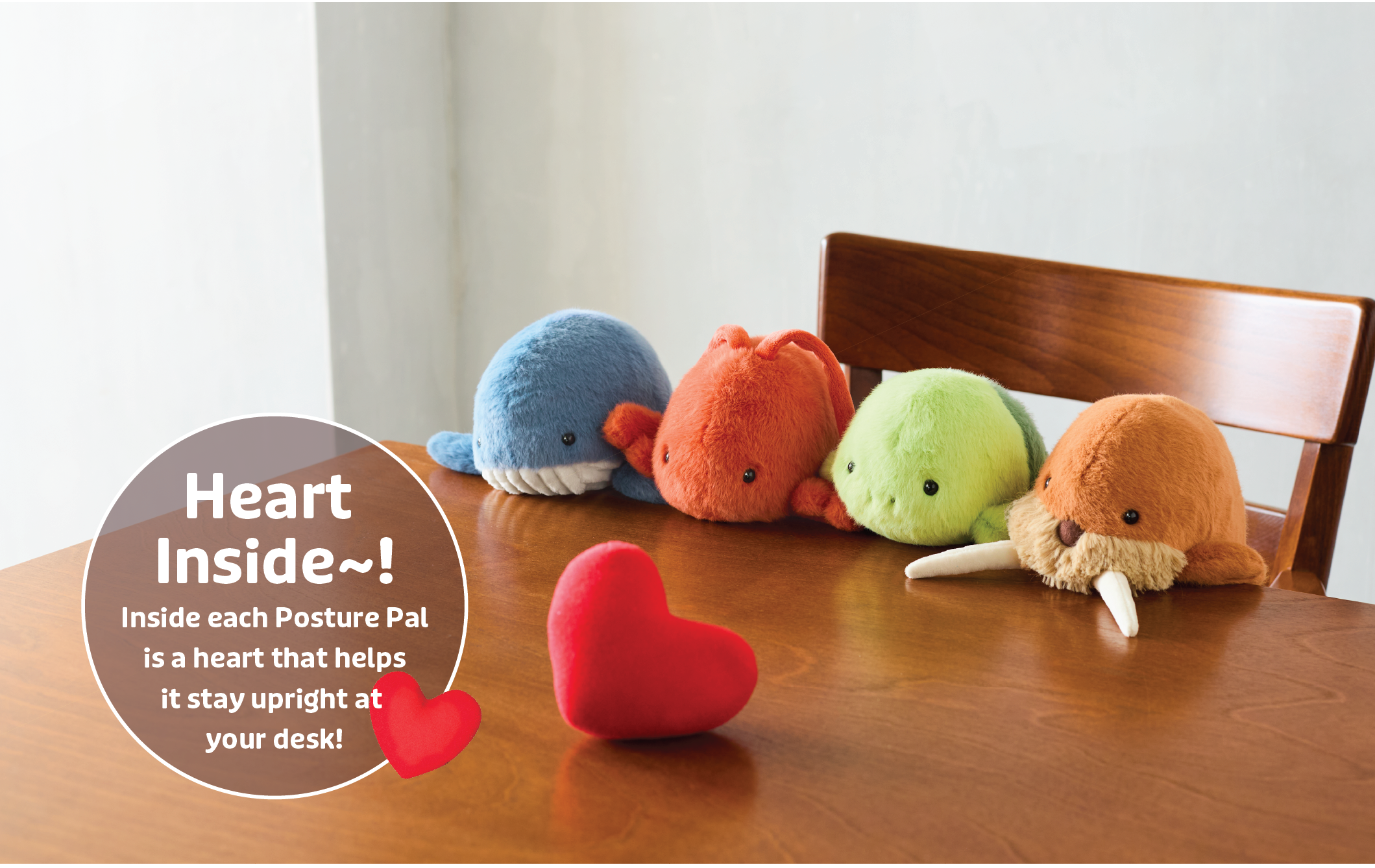Each Posture Pal contains a heart to stay upright and hold your desk while you’re away. You can pick up right where you’ve left off when you return!