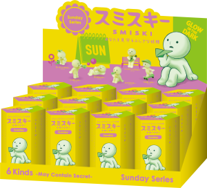 The lineup features 6 kinds + 1 secret figure and includes SMISKI Sing-Along who sings and plays guitar. SMISKI Sunbathing who naps in the warm sun with a furry friend. and SMISKI Skateboarding who’s ready for fun on the go. A day off spent with SMISKI is always refreshing.